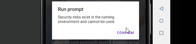 Before jumping into bypass attempts, I always prefer to manually explore the app to understand its core functionalities. When I launched the app, it opened but immediately displayed an error message on the screen.