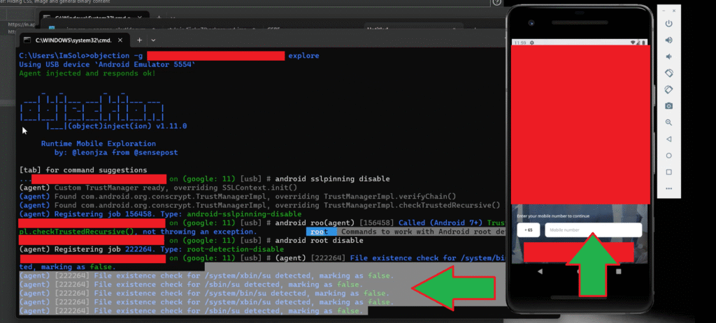 I want to clarify an important point regarding the use of the Objection tool for bypassing SSL pinning and root detection in the [Redacted App]. When I attempted the bypass, I executed the following Objection commands: